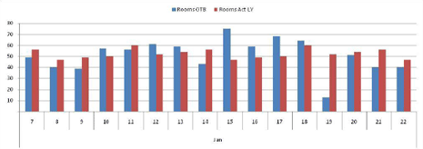 Figure 1: Chart produced from a transactional system, such as a property management system, showing the next 15 days’ business on the books (OTB) as of today and the actual sales for the same period last year (Act LY).